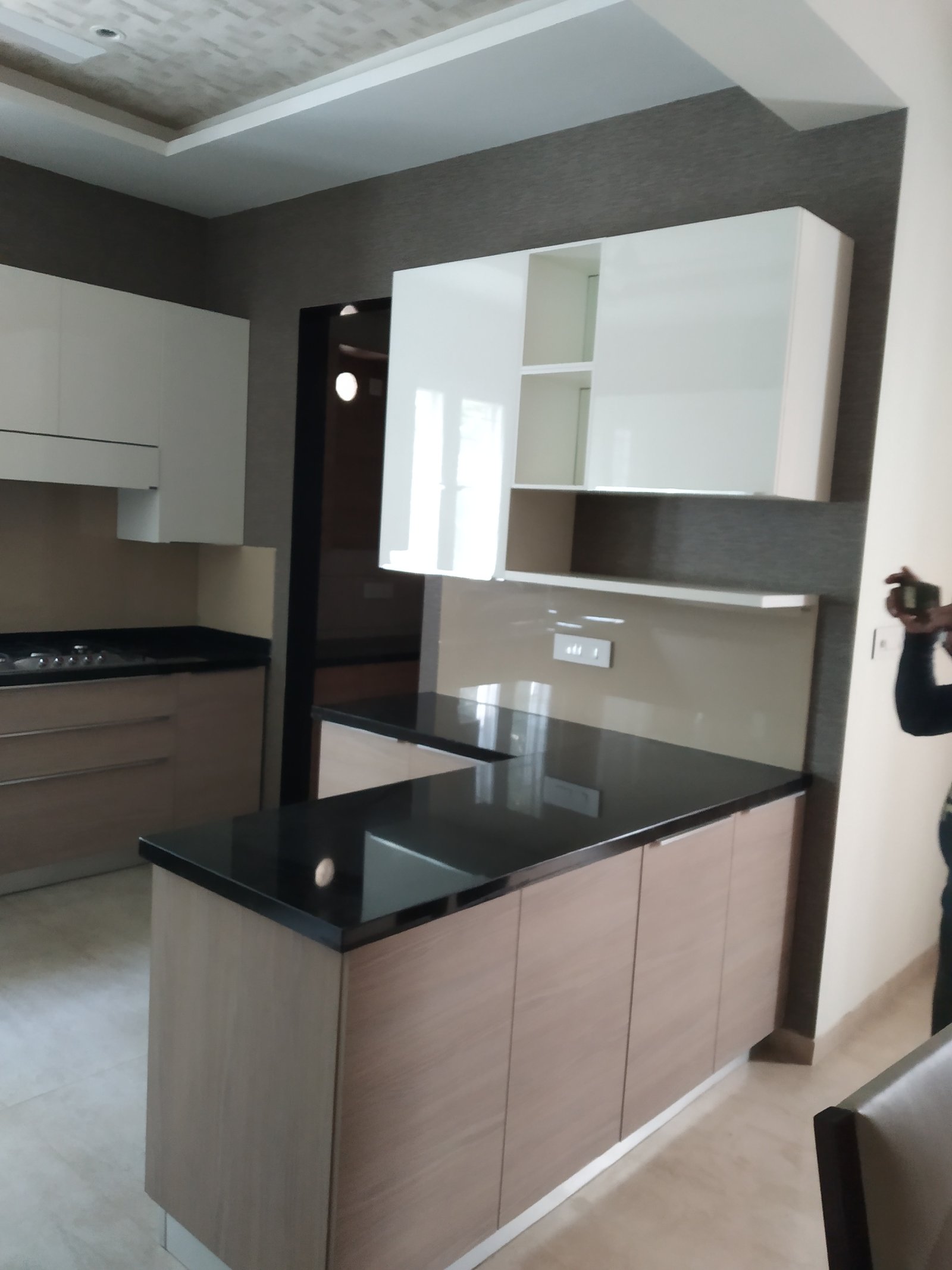 This project showcases a modern modular kitchen design created by combining three functional views into one complete kitchen experience.